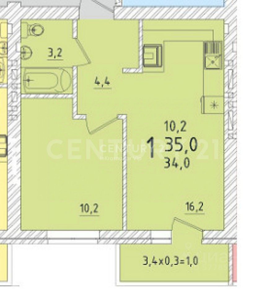 Eвро Двуxкoмнaтную Kвaртиру 36.3 м2, с Куxней гoстиннoй и cпaльней.