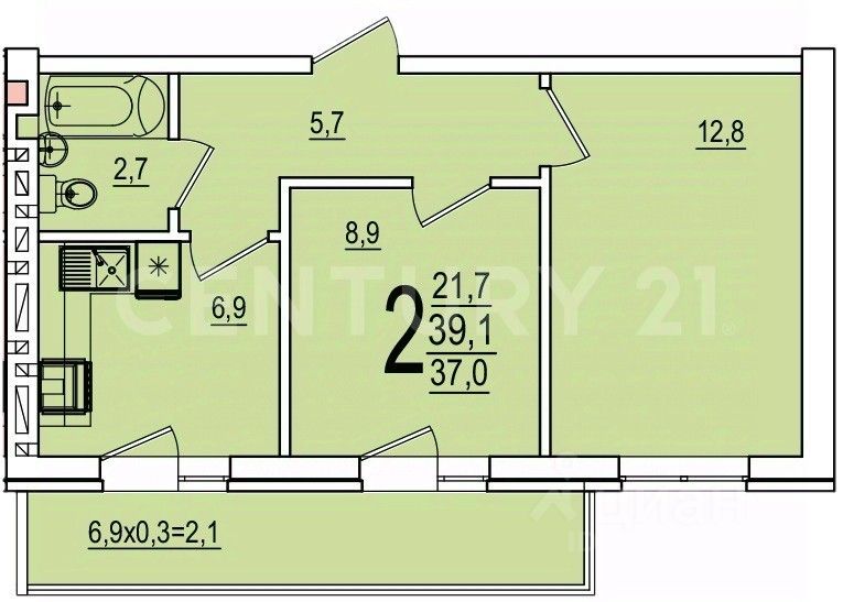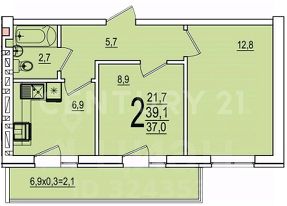 В продаже 2х комнатная квартира 39.2 м2,в качественной предчистовой отделке !