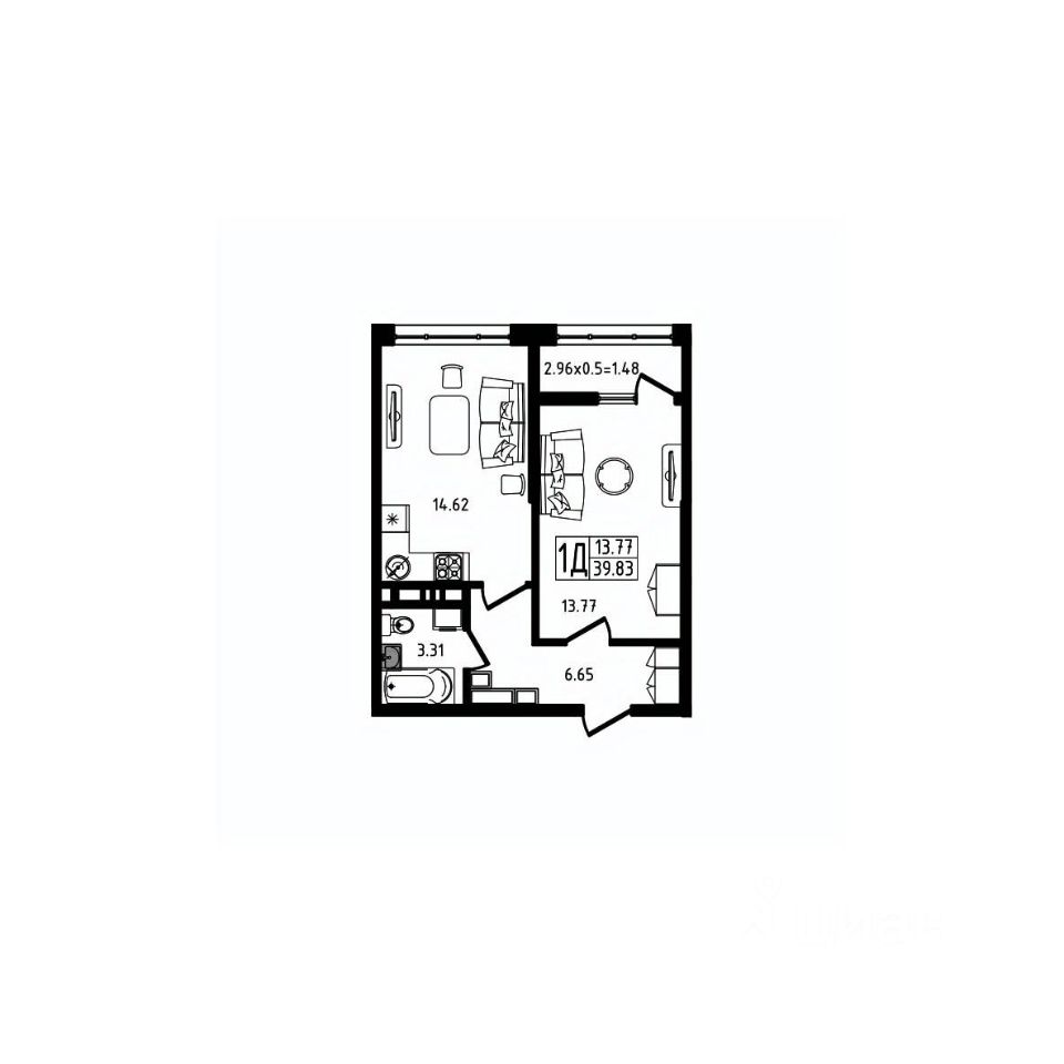 39,83 м²