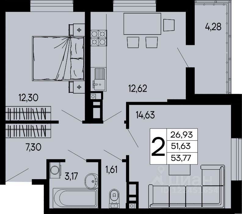 53,77 м²