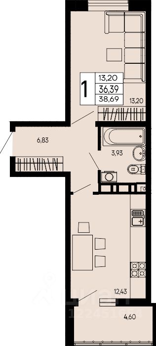 38,69 м²