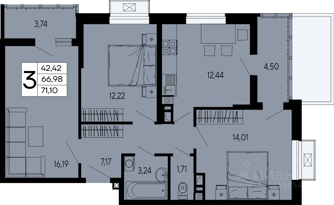 71,1 м²