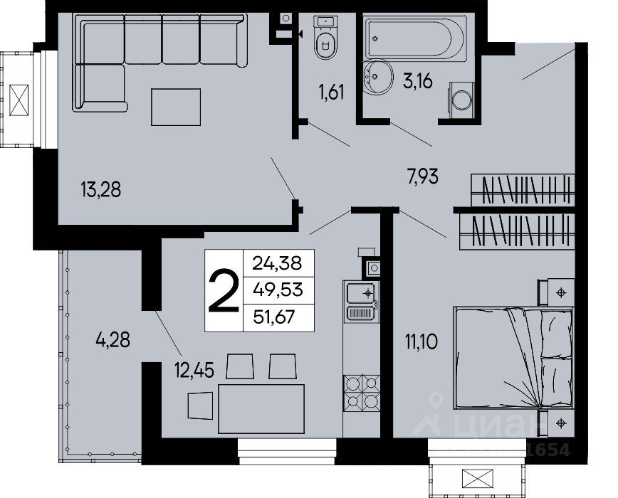 51,67 м²