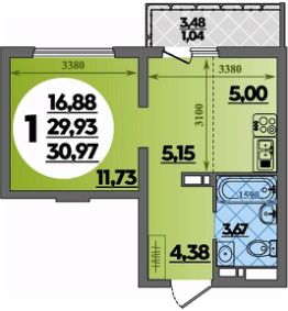 Продаётся студия в строящемся доме (Литер 3), срок сдачи: II-кв. 2027, общей площадью 30.97 кв.м., на 11 этаже.