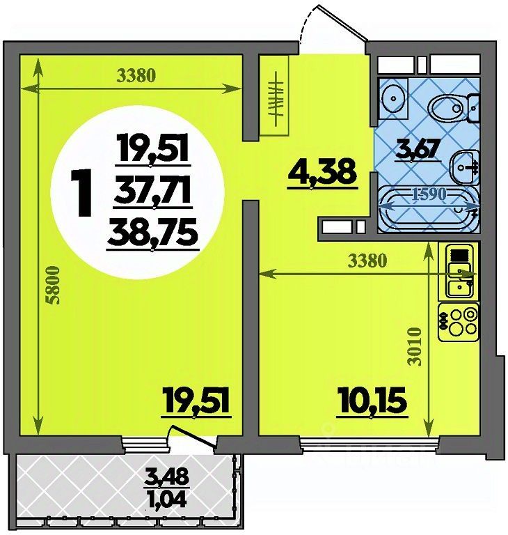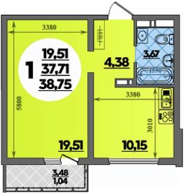 Продаётся 1-комнатная квартира в строящемся доме (Литер 3), срок сдачи: II-кв. 2027, общей площадью 38.75 кв.м., на 4 этаже.