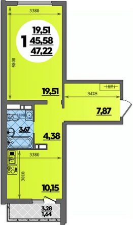 Продаётся 1-комнатная квартира в строящемся доме (Литер 3), срок сдачи: II-кв. 2027, общей площадью 47.22 кв.м., на 8 этаже.