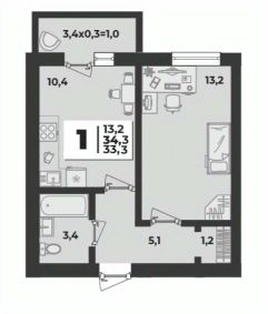 33,3 м²
