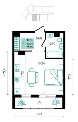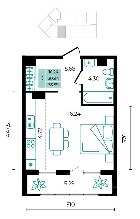 Общая площадь33,59 м²