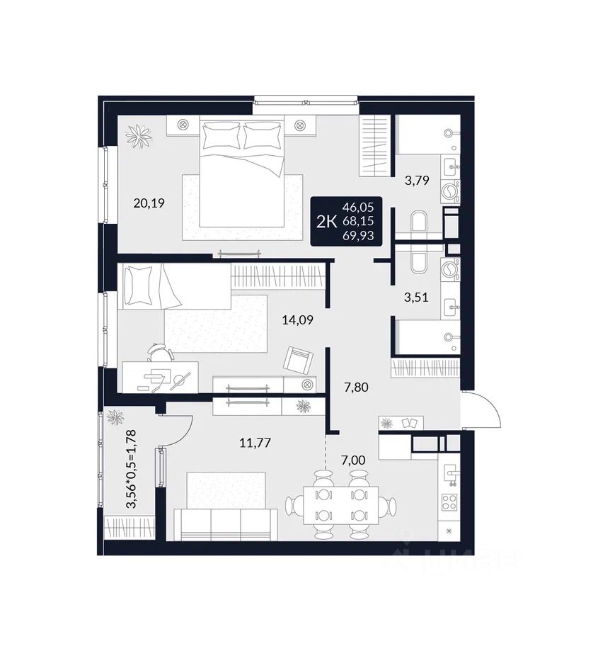 Общая площадь69,93 м²
