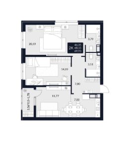 Продается 2-комн. квартира, 69,93 м²