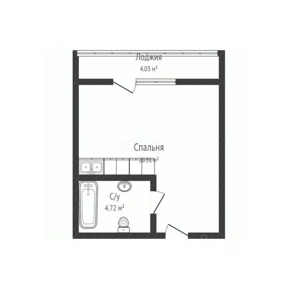 Продается студия площадью 26,2 квадратный метр не учитывая балкон, балкон 4 кв.м. черновая отделка