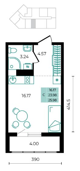 Общая площадь25,98 м²