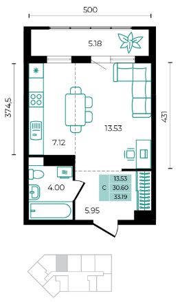 Общая площадь33,19 м²