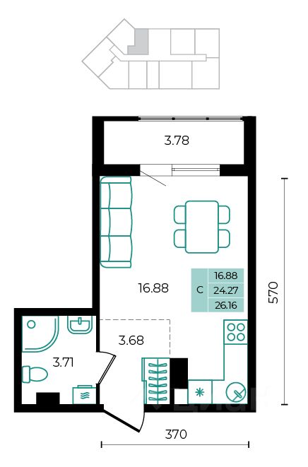 Общая площадь26,16 м²