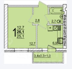 12,7 м²
