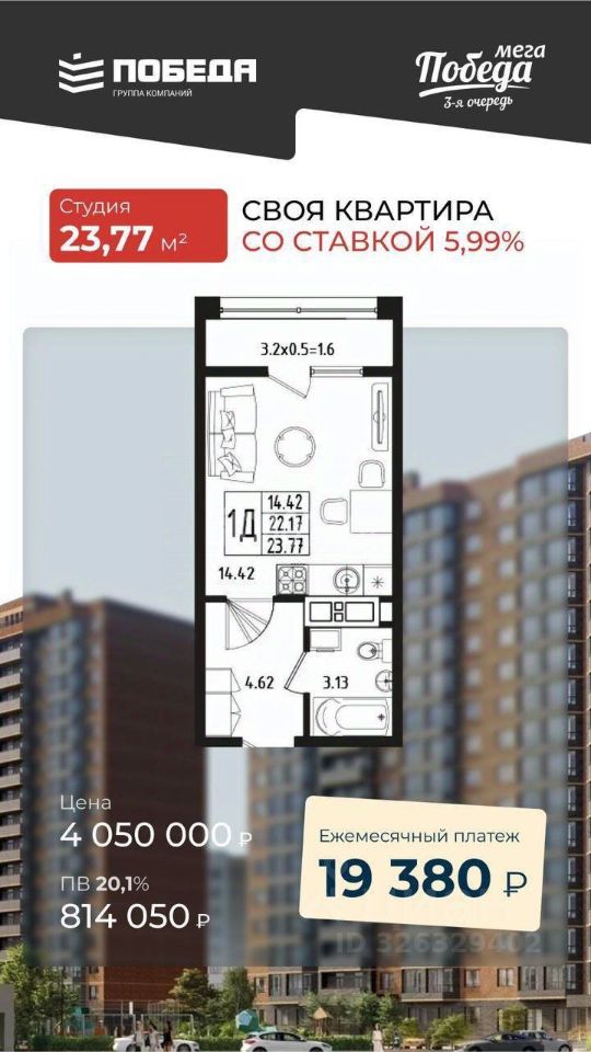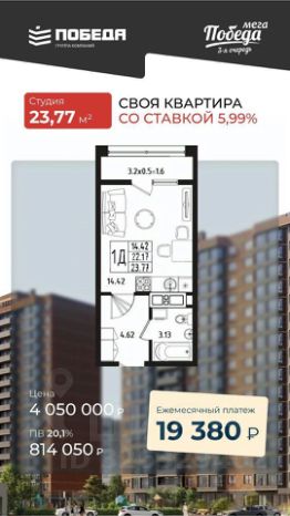 14,4 м²