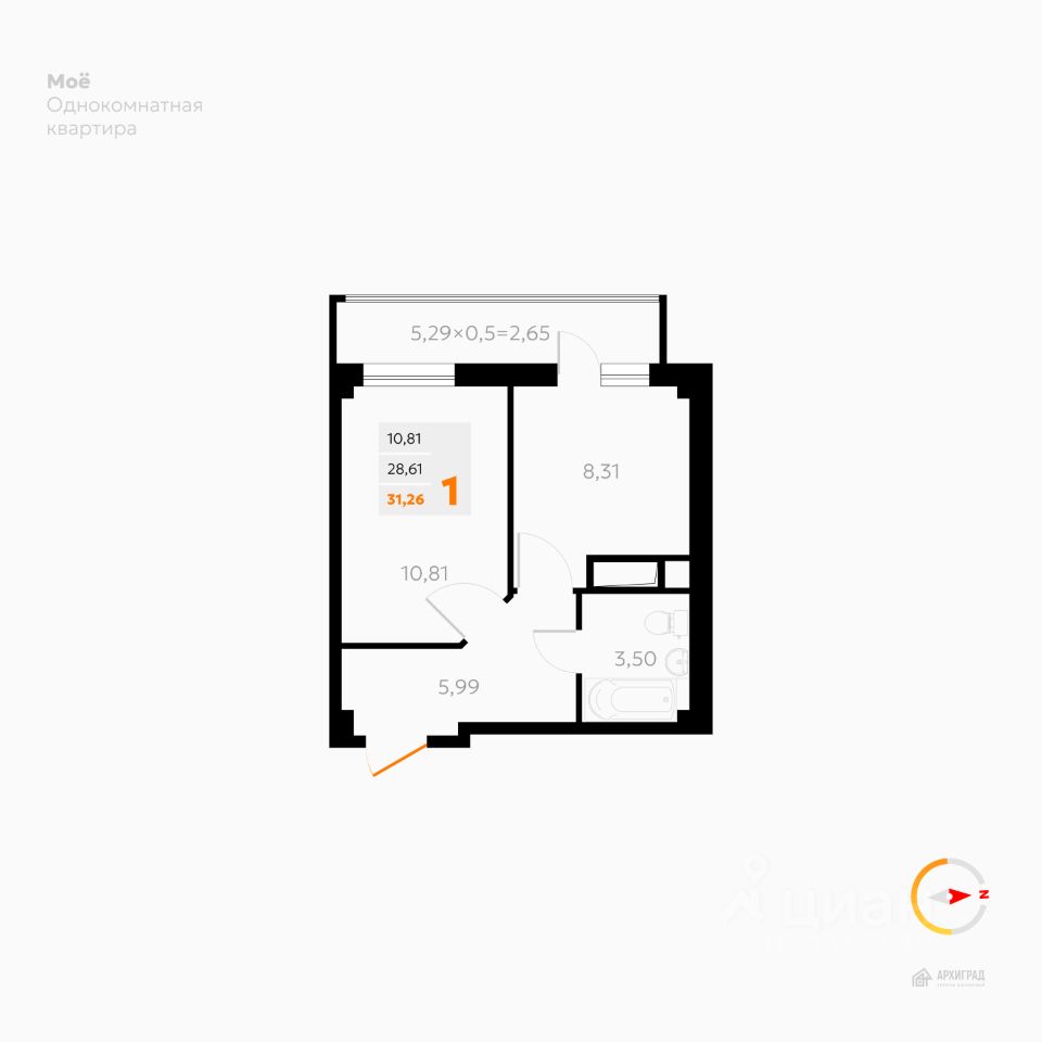 Общая площадь31,26 м²