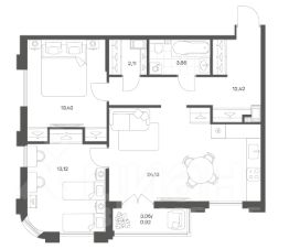Квартира расположена на 10-м этаже площадью 69,06 м².