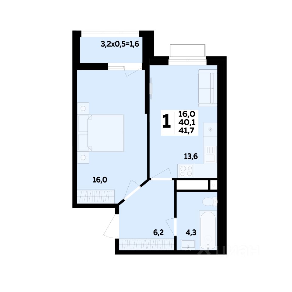 Общая площадь41,7 м²