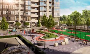 На территории комплекса выполнен ландшафтный дизайн: ухоженные газоны, цветочные клумбы и зоны отдыха. Предусмотрены современные детские площадки с безопасным покрытием и многофункциональные спортивные площадки, оснащенные профессиональными силовыми тренажерами. Рядом с подъездами установлены вело-парковки. Первый этаж дома занимают коммерческие помещения. Для владельцев автомобилей предусмотрен подземный паркинг.