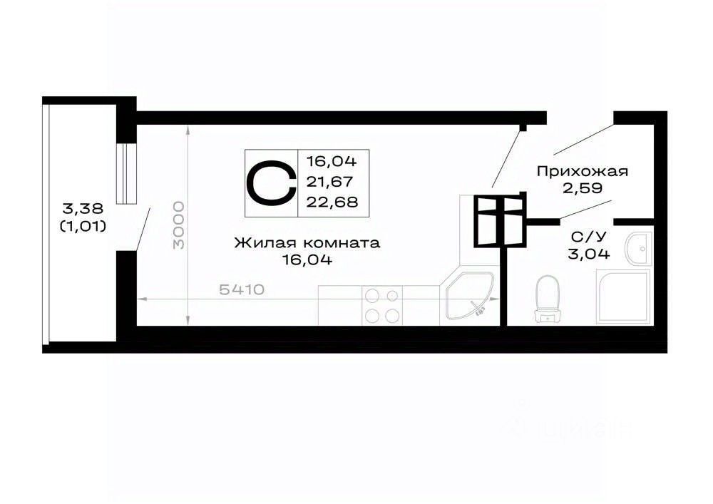 Продается студия, площадью 22.68 м2.