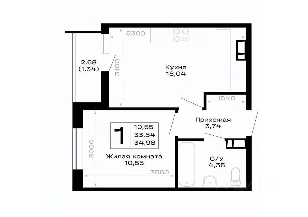 34,98 м²