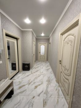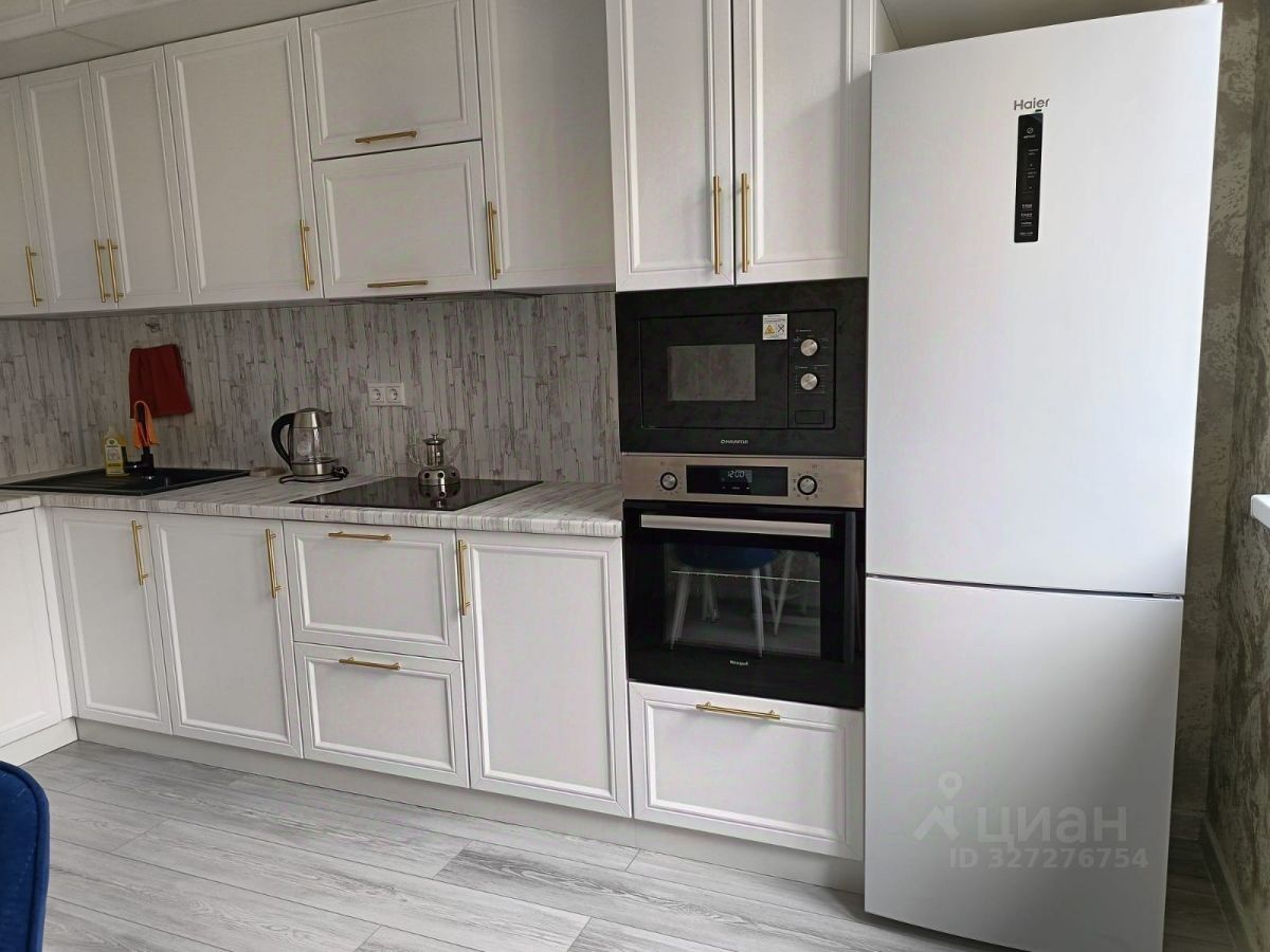 В квартире сделан очень качественный и дорогой ремонт, установлен отличный кухонный гарнитур с встроенной техникой: варочная плита, духовой шкаф, микроволновка, стиральная машина, холодильник, телевизор.