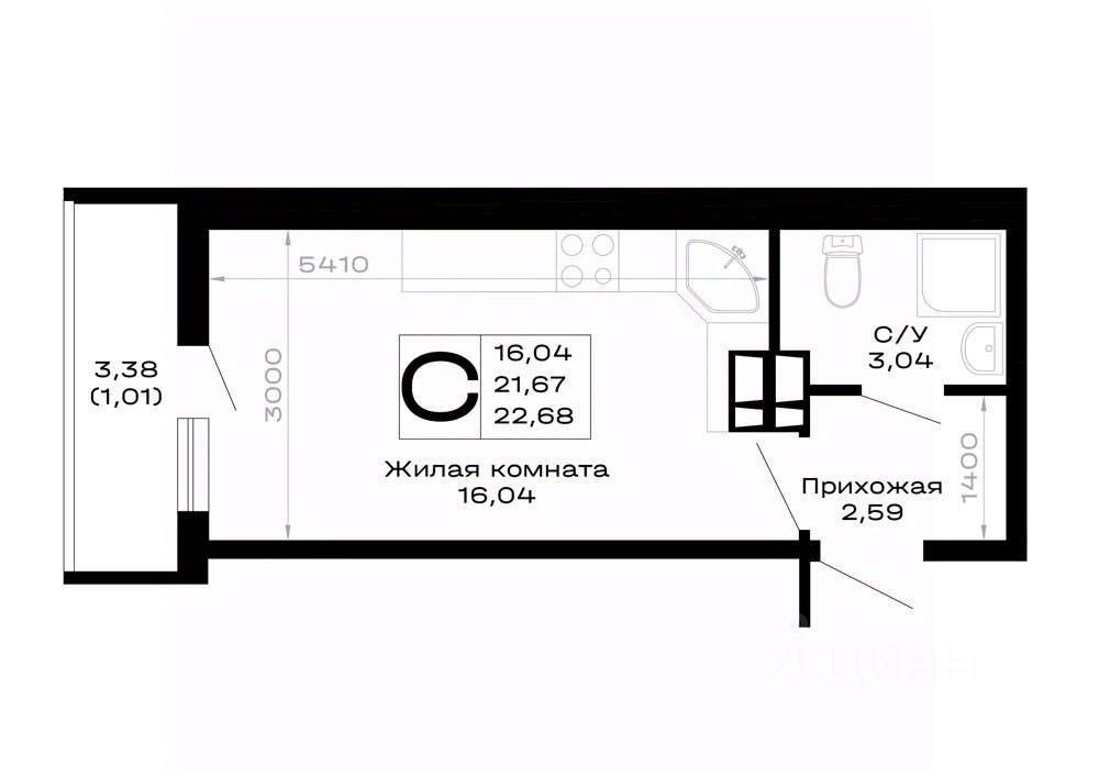 22,68 м²