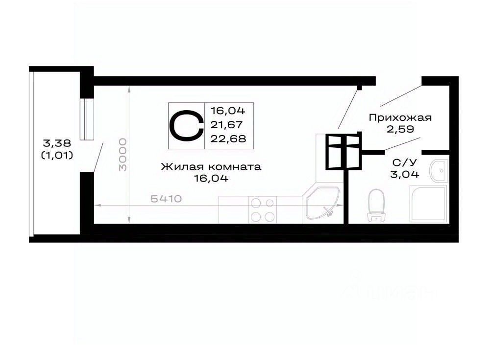 Общая площадь22,68 м²