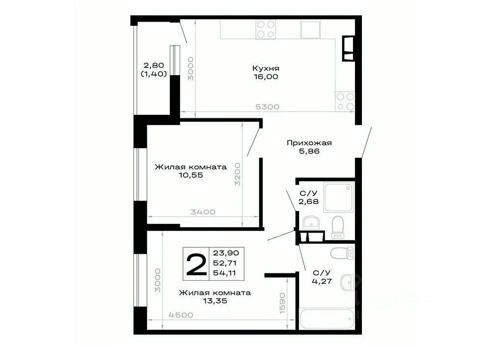 54,11 м²