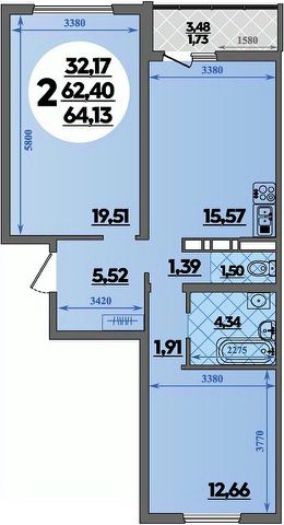 Продаётся 2-комнатная квартира в строящемся доме (Литер 4), срок сдачи: II-кв. 2027, общей площадью 64.13 кв.м., на 5 этаже.