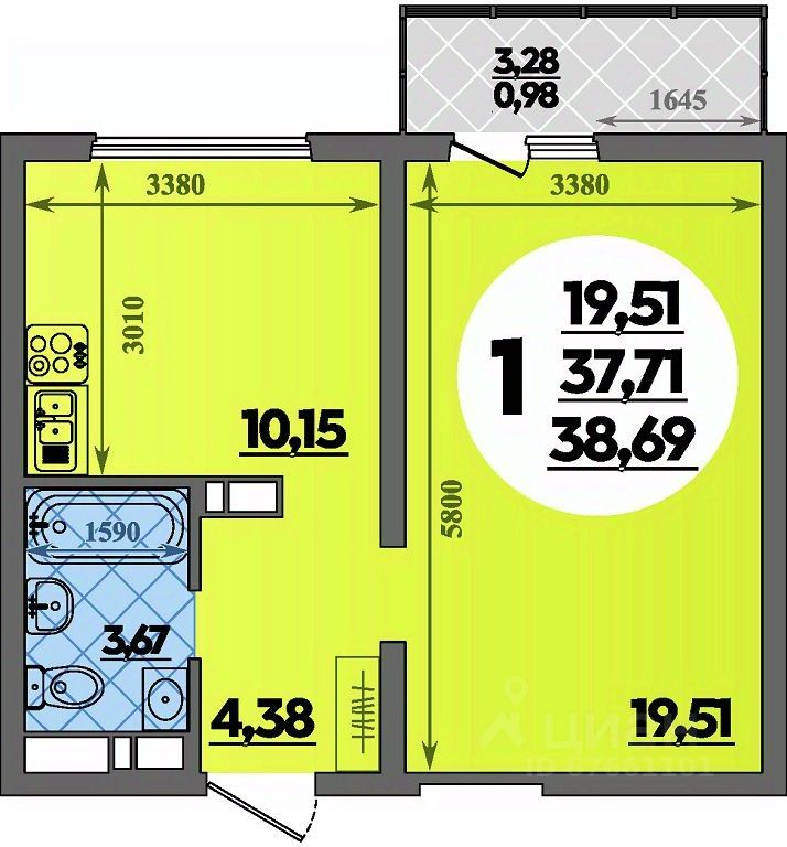 Общая площадь38,69 м²