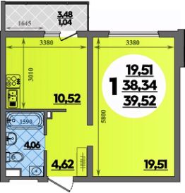 Продаётся 1-комнатная квартира в строящемся доме (Литер 4), срок сдачи: II-кв. 2027, общей площадью 39.38 кв.м., на 1 этаже.