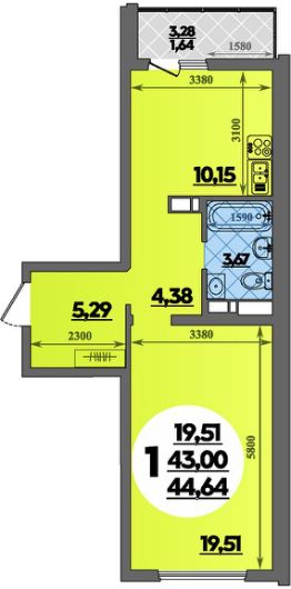 Продаётся 1-комнатная квартира в строящемся доме (Литер 4), срок сдачи: II-кв. 2027, общей площадью 44.64 кв.м., на 4 этаже.