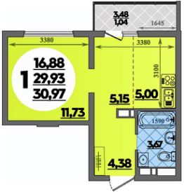 Продаётся студия в строящемся доме (Литер 4), срок сдачи: II-кв. 2027, общей площадью 30.97 кв.м., на 5 этаже.