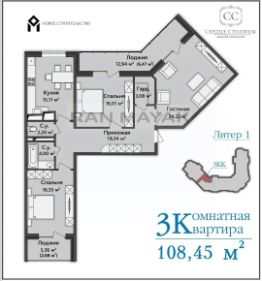 Арт. 124594217 Продается просторная 3-комнатная квартира в новом доме в центре города!