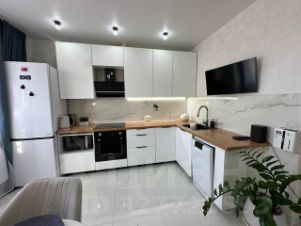 В квартире выполнен дорогой дизайнерский ремонт в современном стиле, интерьер, мебель и бытовая техника подобраны со вкусом, все очень практично и изящно. Балкон и лоджия утеплены и укомплектованы очень практично и со вкусом.