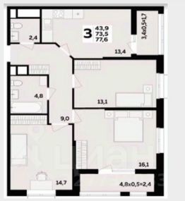 Общая площадь77,6 м²