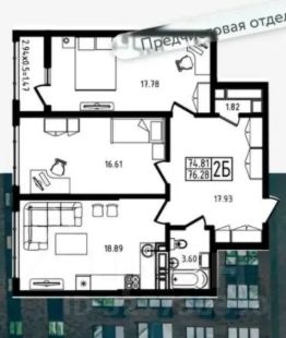 Продается 2-комн. квартира, 76,28 м²