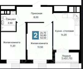 Продается 2-комн. квартира, 53 м²
