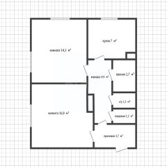 Планировка включает изолированную спальню, уютную гостиную, просторную кухню и раздельный санузел, а также кладовую комнату для хранения.
