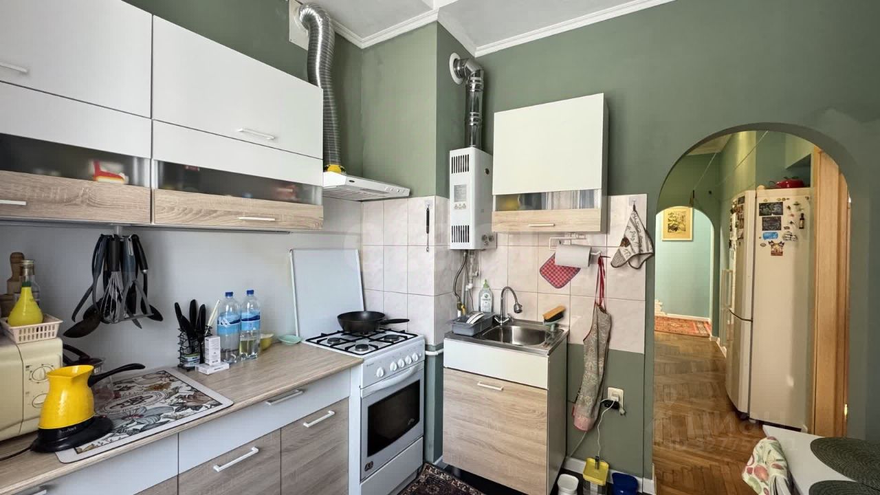 Высота потолков составляет больше трёх метров, что создает ощущение простора, а окна, выходящие на две стороны, гарантируют отличную естественную освещенность и проветривание помещений.