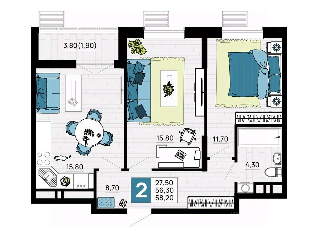 Литер 1, 7 этаж, 56. ЖК "Традиции" - это новый современный комплекс на 7 гa, в 10 минутах от Краснодара. Баланс города и природы.