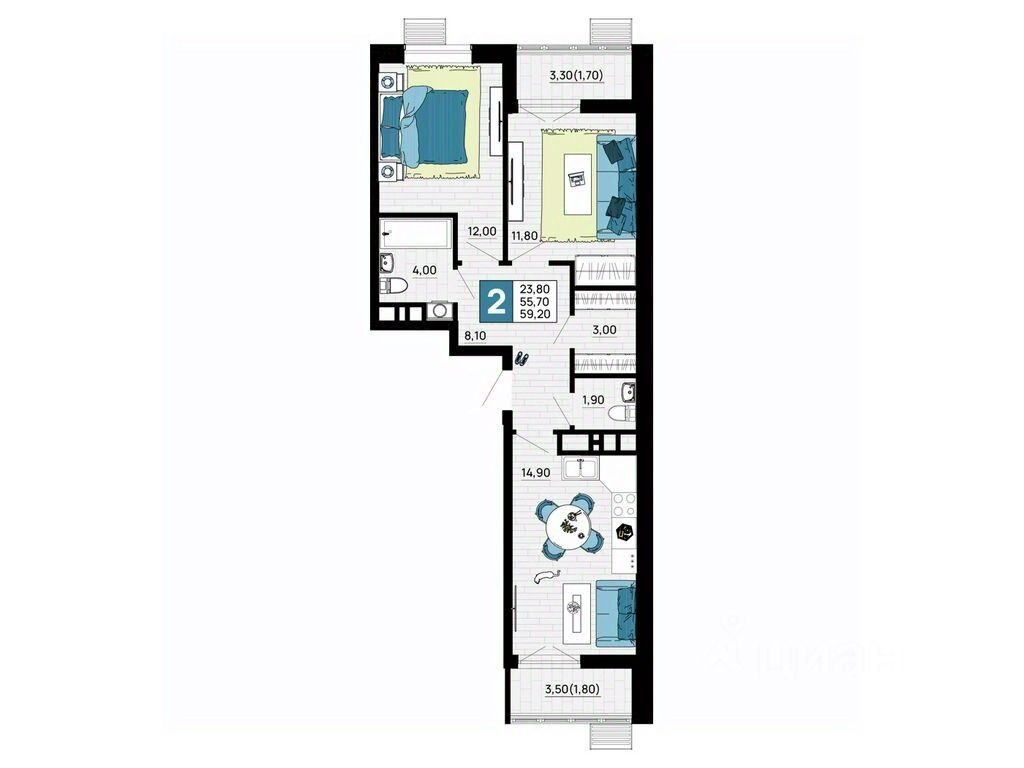 Литер 2, 10 этаж, 91. ЖК "Традиции" - это новый современный комплекс на 7 гa, в 10 минутах от Краснодара. Баланс города и природы.