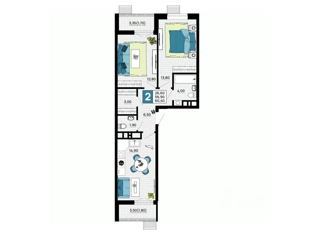 Литер 6, 15 этаж, 152. ЖК "Традиции" - это новый современный комплекс на 7 гa, в 10 минутах от Краснодара. Баланс города и природы.