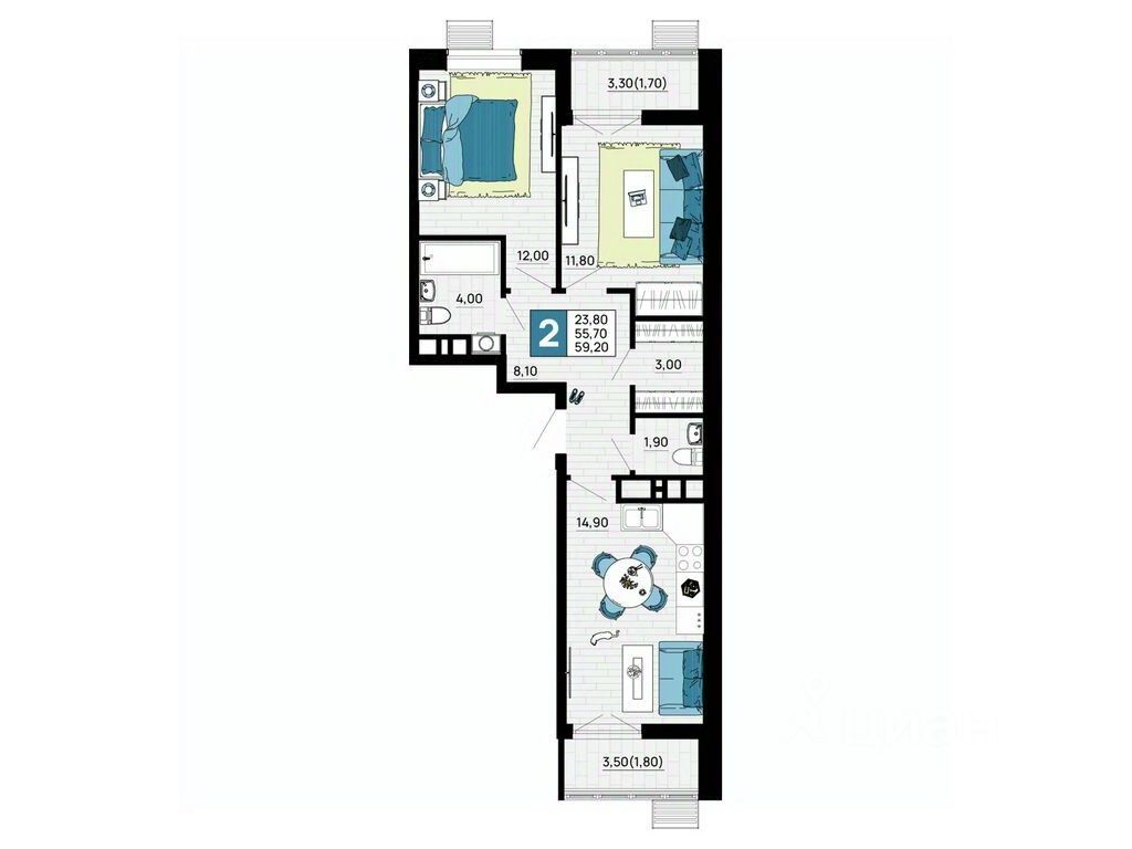 Литер 6, 2 этаж, 3. ЖК "Традиции" - это новый современный комплекс на 7 гa, в 10 минутах от Краснодара. Баланс города и природы.