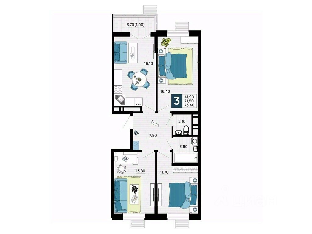 Литер 5, 5 этаж, 205. ЖК "Традиции" - это новый современный комплекс на 7 гa, в 10 минутах от Краснодара. Баланс города и природы.