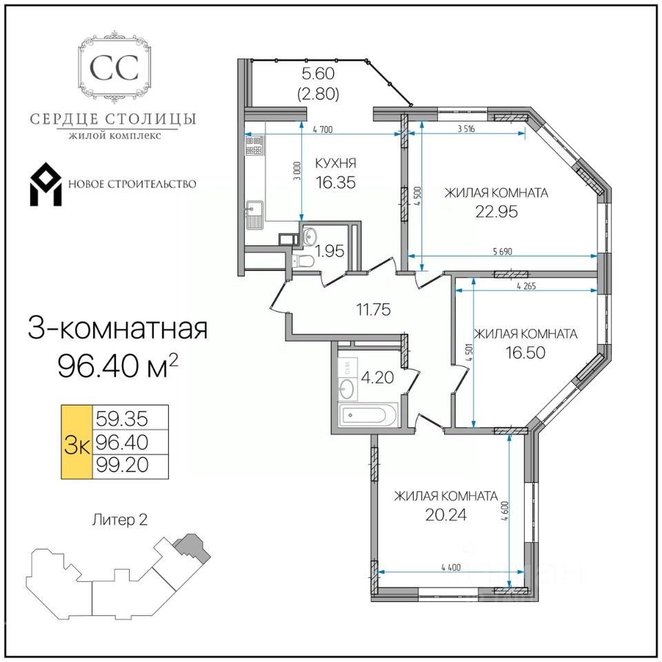 Общая площадь96,4 м²