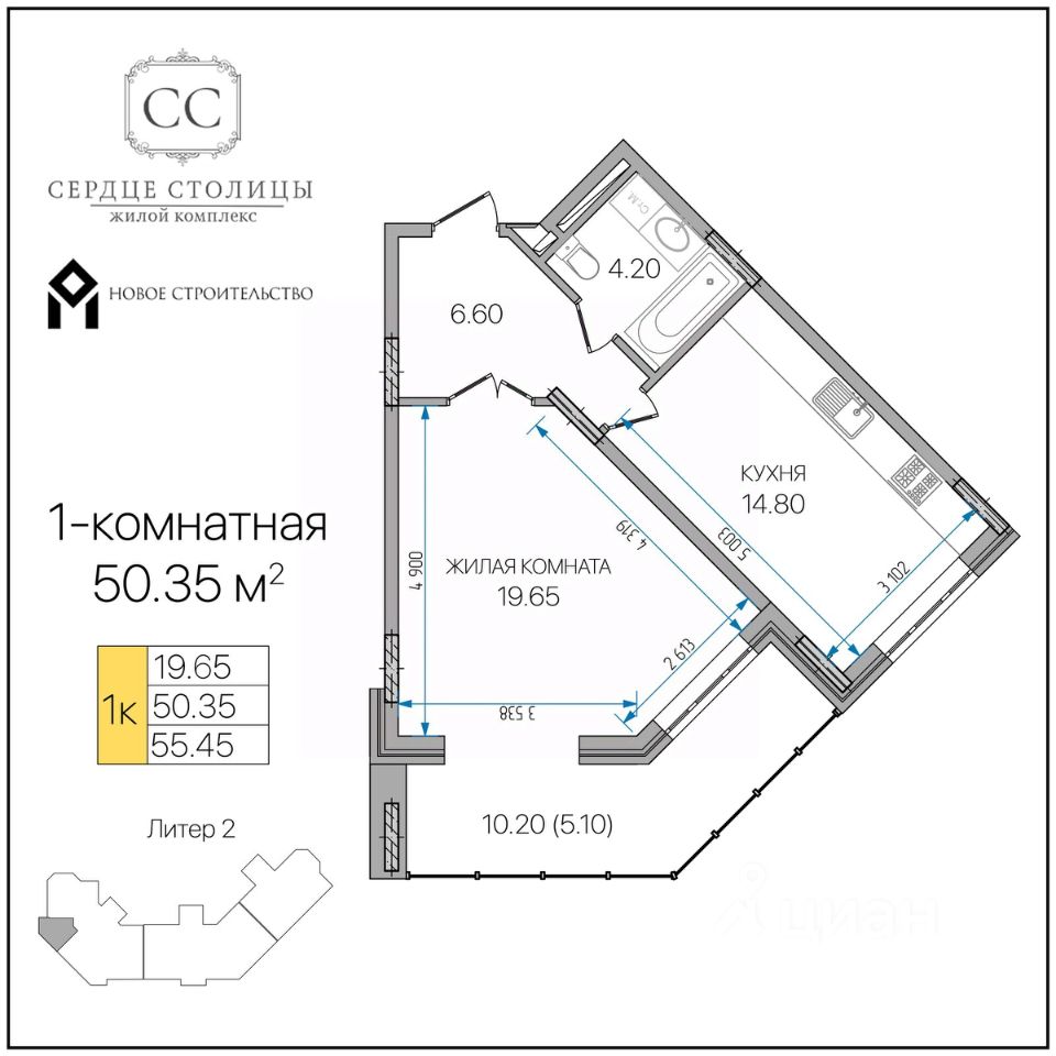 Общая площадь50,35 м²