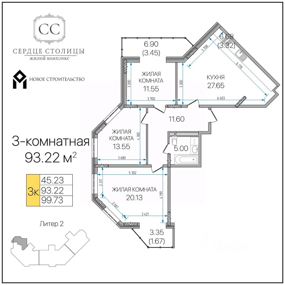 Общая площадь93,22 м²